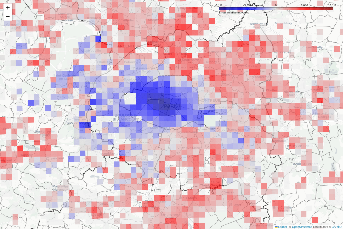 heatmap_relative_error(gdf, target_col="relative_error_prix_on_transport").save(assets / "ml2.html")Heatmap de l'erreur relative moyenne, rouge = sur-estimation, bleu = sous-estimation